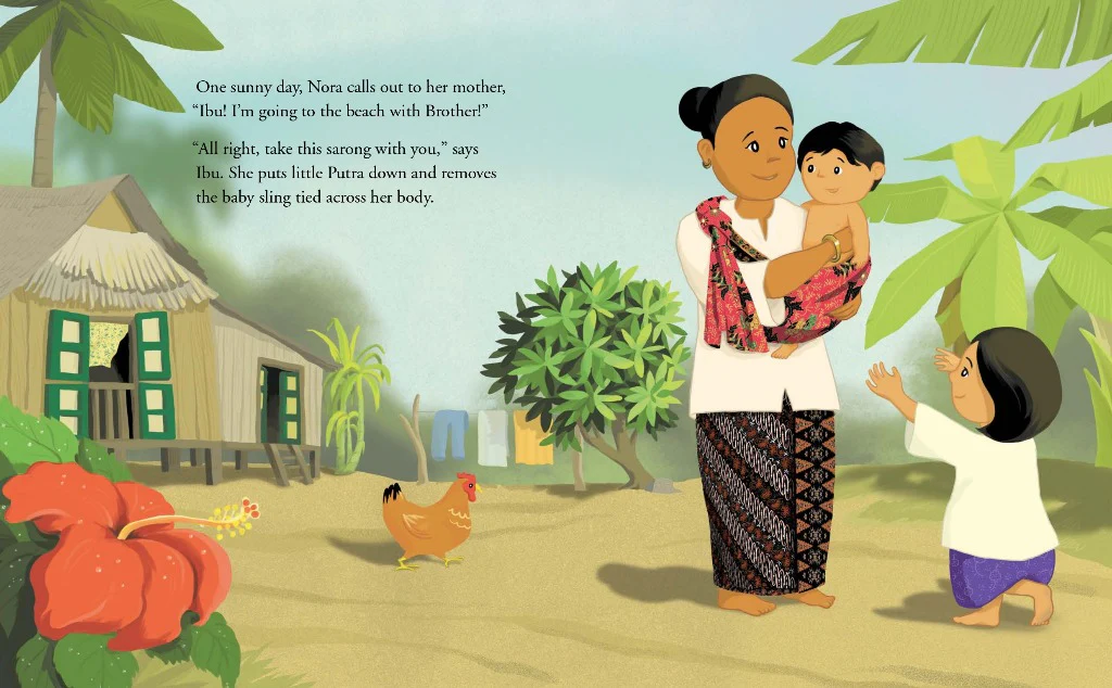 Get the E-book Listen to the audiobookIsn’t a sarong just a boring big piece of cloth? What can be so amazing about it? Nora and Adi are about to go to the beach when their mother takes off her baby sling and hands it to the two children. They discover that there is more than meets the eye to this seemingly ordinary sarong. Join Nora and Adi as they go on a playful day out and discover what unexpected fun, joy and new encounters the sarong can bring.